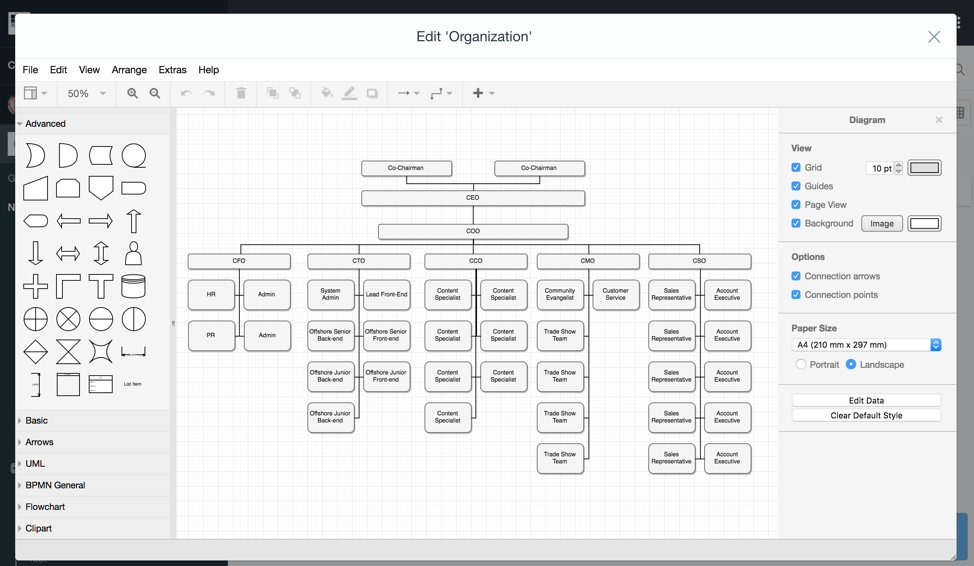 Die direkte Integrierung in die Liferay Document Library ermöglicht zudem das Einbinden erstellter Grafiken als gewöhnliches Liferay-Dokument an beliebigen Stellen im Portal. Zudem stehen die üblichen Standard-Features für Dokument uneingeschränkt zur Verfügung: Automatische Vorschau, Versionierung, Workflows, Verwaltung von Metadaten und Berechtigungen. Graphen können zudem direkt über die Document Library angelegt und bearbeitet werden. Zusätzlich steht der Editor optional als separates Portlet auf jeder beliebigen Portalseite zur Verfügung. Zahlreiche Standardformen für Ihre Grafiken, die unkomplizierte Bedienung und ein Export als Bild, PDF, SVG oder XML runden den Funktionsumfang ab.